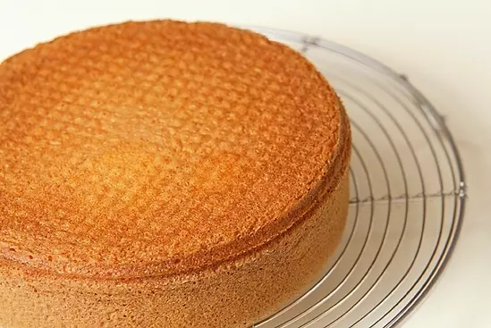 焼き上がれば、型ごと焼き色がついた側を下にひっくりかえし、ケーキクーラにのせ、型を外して完全に冷ます。完全に冷めればラップでしっかり包み、冷凍保存も可能です。使う場合は、冷蔵庫で自然解凍して下さい。