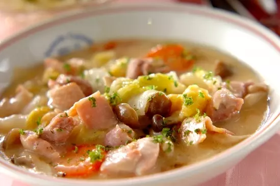 トロッとやわらかくなった白菜がおいしいです。芯の部分は削ぎ切りにするのがポイント。