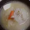 煮たったら火を弱めてアクを取り、鍋に蓋をして蒸し煮にする。野菜が柔らかくなったらみそを溶き入れて火を止め、器に注ぎ入れる。