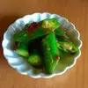 梅肉和えだけど、ごま油で酸味が程よく抑えられて食べやすかったです。この日のメインが鳥の唐揚げだったのですが、箸休めにピッタリの副菜でした。しかも茹でて和えるだけなのでとっても簡単♪また作りたいです!