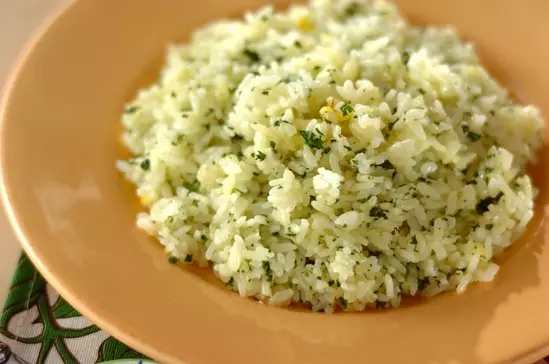 炊き上がったら、パセリ、バター、レモン汁を加え、サックリと混ぜ、器に盛る。