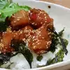 韓国風の漬け丼が食べたくて参考にさせて頂きました。こちらのタレに10分程漬け置いただけですが、淡白なビンチョウマグロがすごくコクが出てピリ辛でとても美味しかったです!ワサビ醤油より好評でした!
