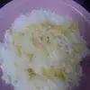 ラップをして電子レンジで2分加熱してよく混ぜ、ドライパセリを振る。(ヒント)電子レンジは600Wを使用しています。