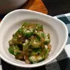 納豆は付属のタレを合わせてほぐすように混ぜ合わせ、小鉢に盛る。上にオクラをのせる。