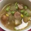 煮立ったら火を弱め、煮立った状態で10分煮て、枝豆、コーンを加えて火を止め、器に注ぐ。