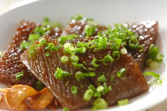 フライパンに板コンニャクを入れて炒める。両面に焼き目が付いたら<調味料>を加えて炒め合わせる。器に盛って(1)とネギをのせ、粗びき黒コショウを振る。