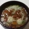 ナメコと豆腐を加え、再び煮たつ直前に火を止める。刻みネギを加え、器に注ぐ。