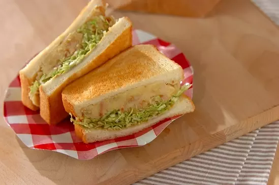 ポテトサラダとソースで和えたキャベツをはさめば、まるでコロッケを食べているようなサンドイッチに。インスタグラムで人気が出た「沼サン」のアレンジレシピです。