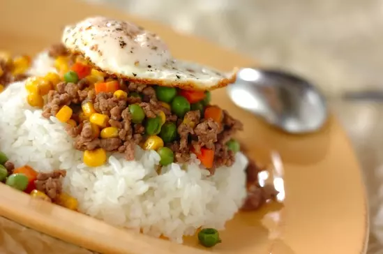 焼き肉のタレをつかって簡単味つけ。ミックスベジタブルとひき肉をササッと炒めて簡単にできるのもいいですね。おいしかったです。