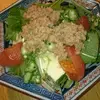 ボウルにレタス、サラダ水菜、紫玉ネギを合わせ、ドレッシングを加えてからめる。器に盛り、ブロッコリーを添えて(1)を散らすようにのせる。