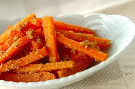 ゴマがたっぷりにゴマ和えはでニンジンの甘みを引き立てます。お弁当にもぴったりの副菜です。