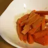 熱湯でニンジンを5分ゆで、ザルに上げて粗熱を取る。